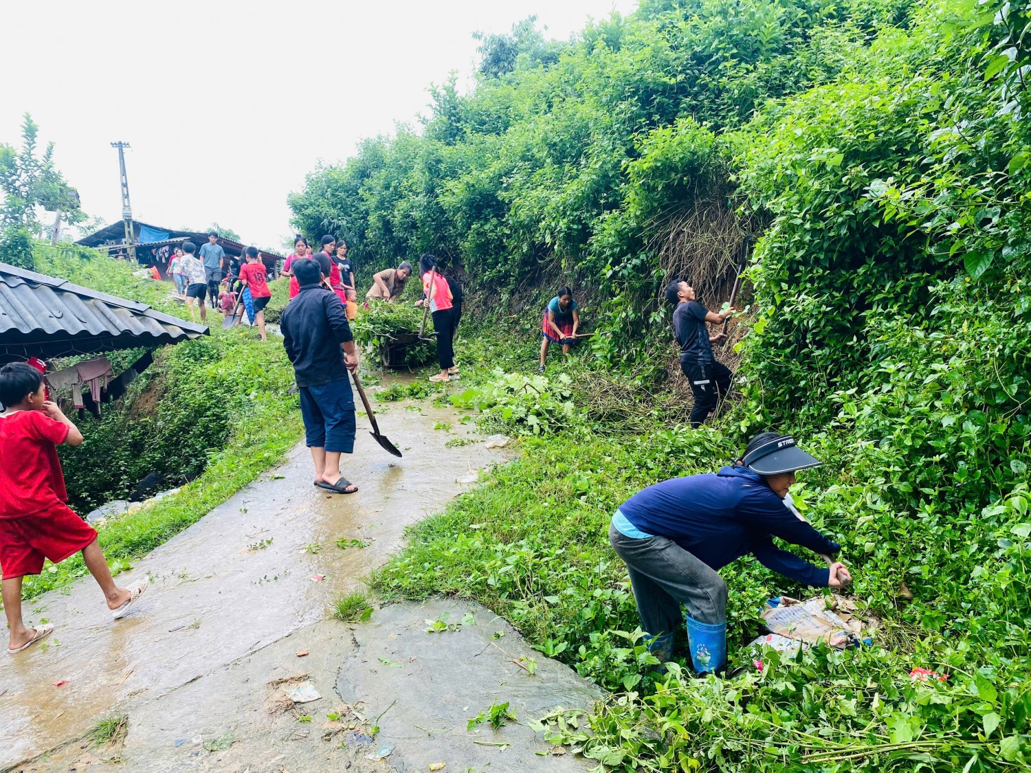 Hình ảnh: Phụ huynh điểm trường Mường Tùng tham gia lao động hỗ trợ nhà trường