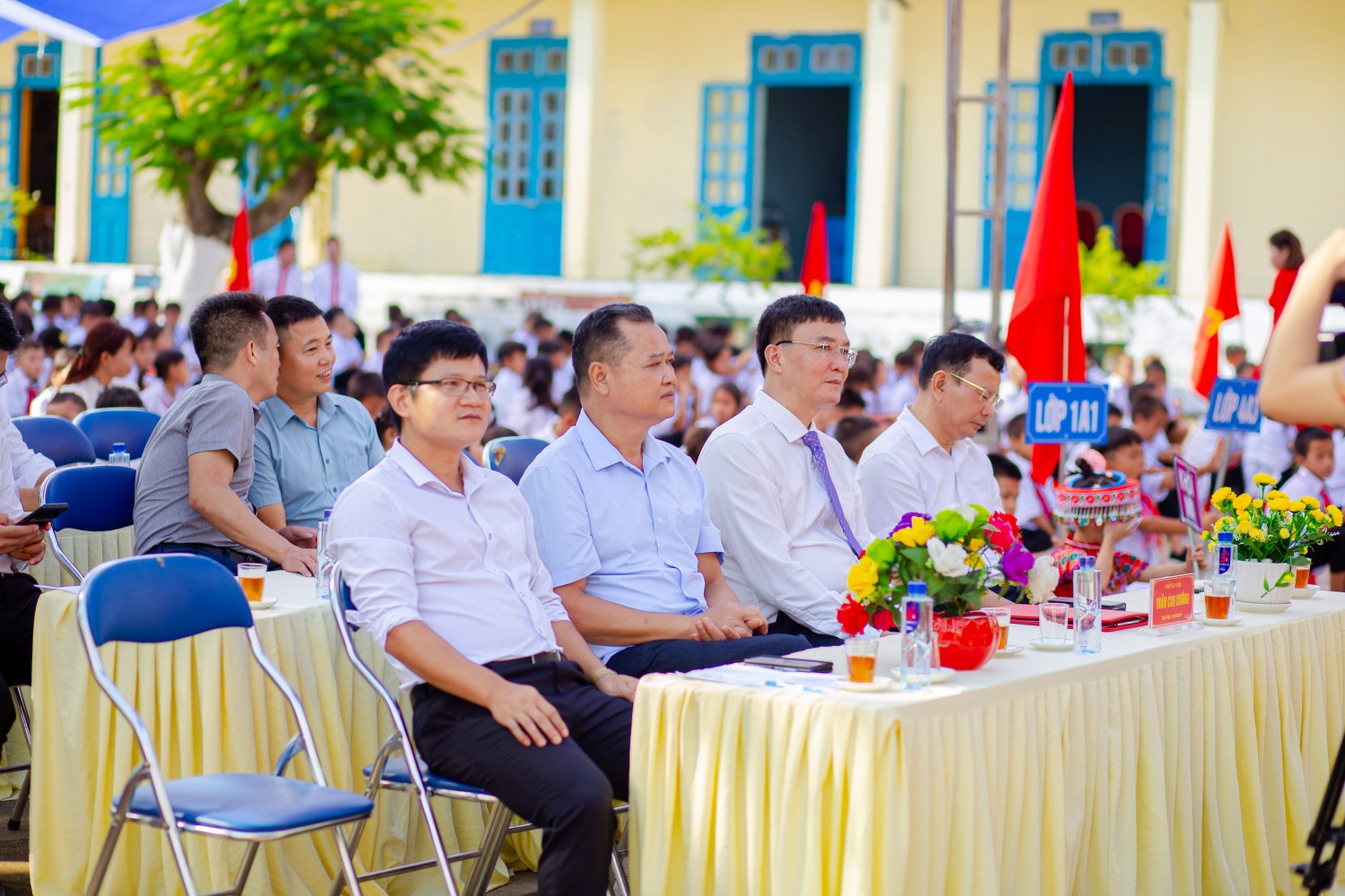 Về dự buổi lễ khai giảng nhà trường rất vinh dự được tiếp đồng chí Trần Cao Cường - TUV, Bí thư huyện Ủy Mường Chà, cùng với các đồng chí lãnh đạo HĐND - UBND - MTTQ huyện Mường Chà, các đồng chí lãnh đạo PGD, các đ/c Lãnh đạo xã cùng các đồng chí đại diện cho các cơ quan, đoàn thể, các phòng ban, các doanh nghiệp trên địa bàn Huyện Mường Chà, phóng viên đài truyền thanh và truyền hình đã đến dự và đưa tin.